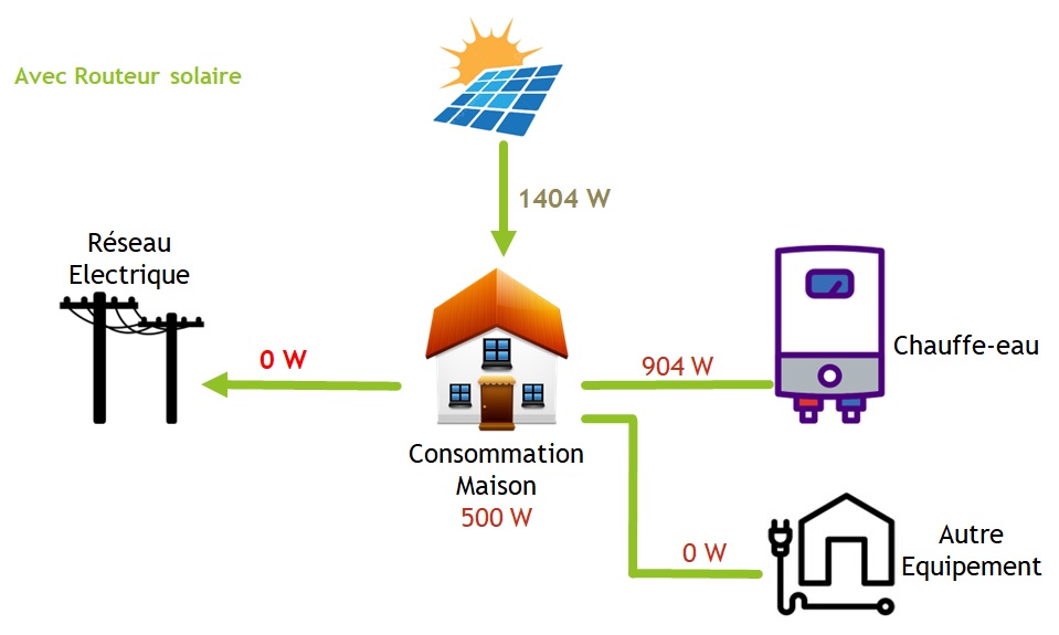 Un routeur solaire est un appareil intelligent qui détecte en temps réel le surplus d’énergie produit par vos panneaux photovoltaïques et le redirige automatiquement vers vos appareils électriques plutôt que de l’envoyer sur le réseau.